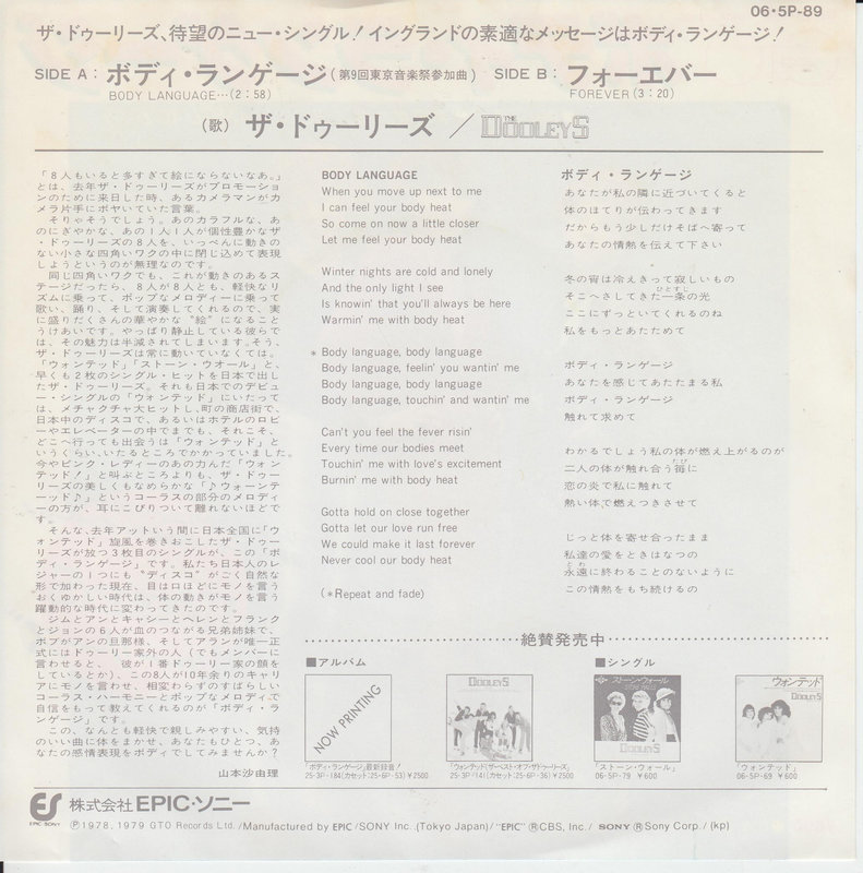 The Dooleys - Body Language (Japan)