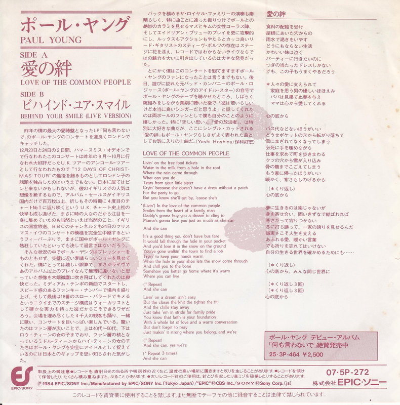 Weiterführende Links zu "Paul Young – Love Of The Common People (Japan)"