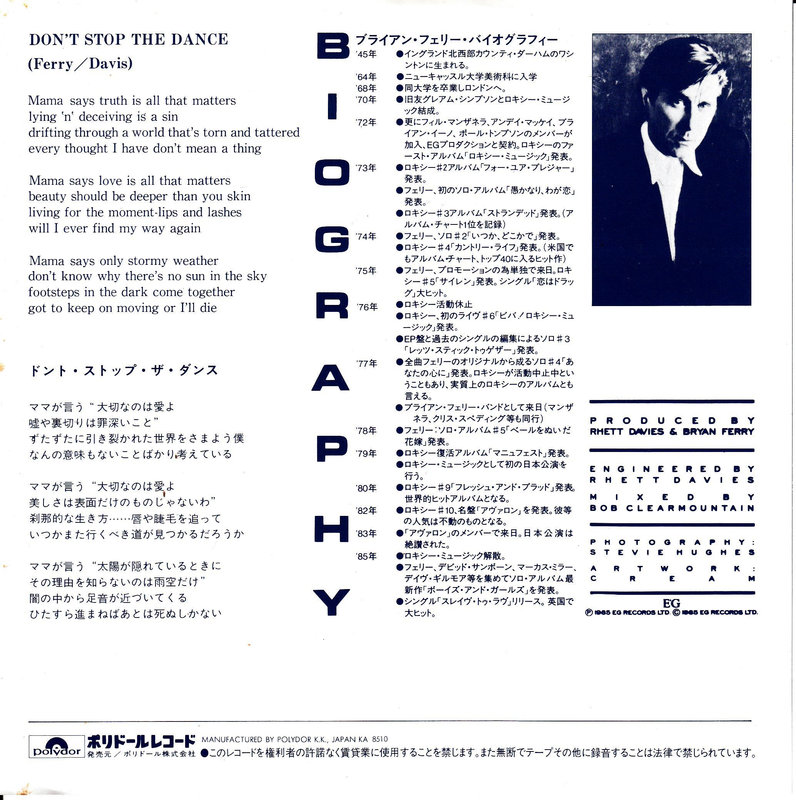 Bryan Ferry – Don't Stop The Dance (Promo) (Japan)